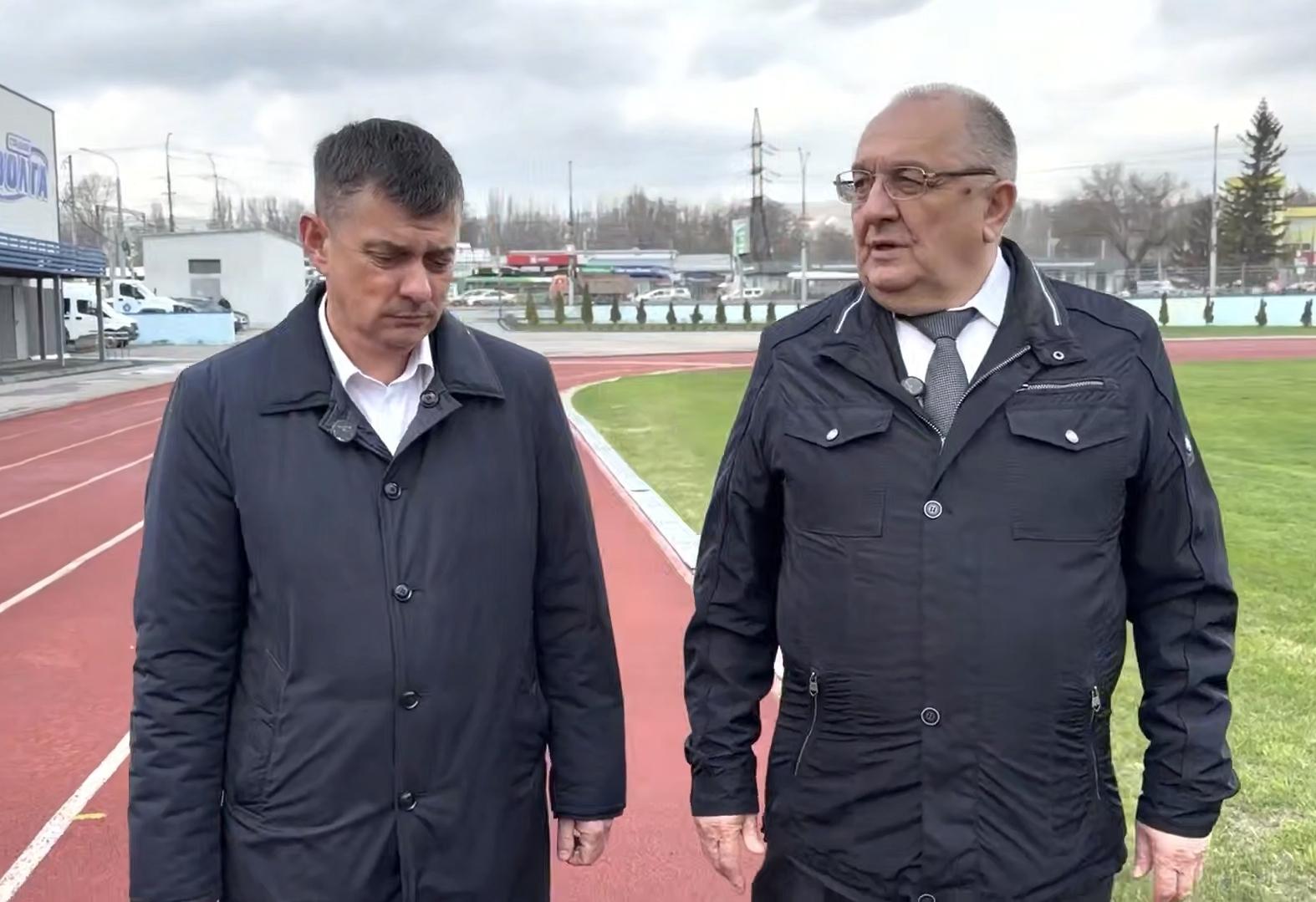 Мэр Игорь Молчанов во время инспекции стадионов.