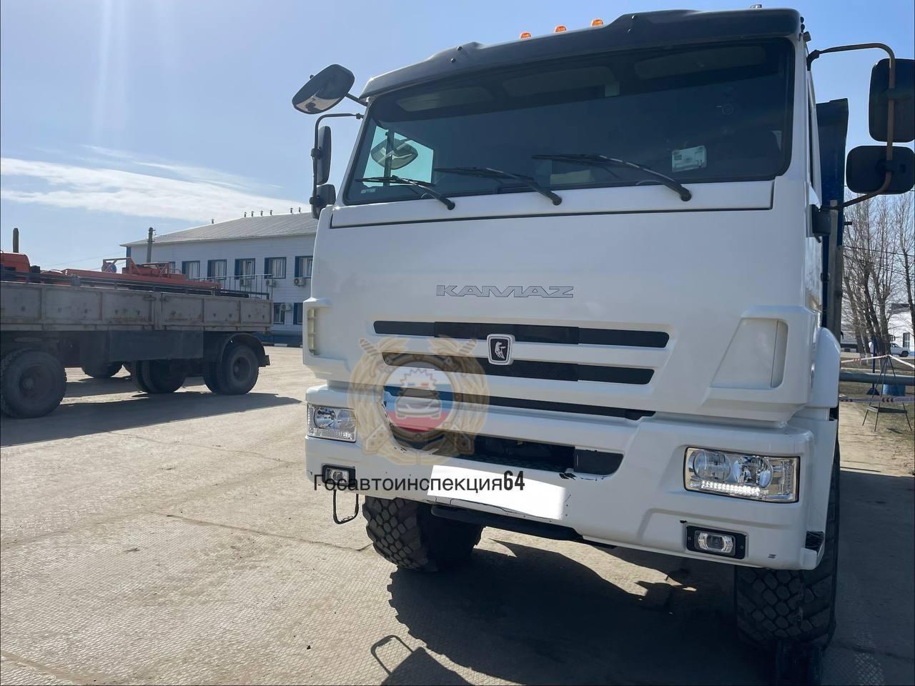 Грузовик КАМАЗ, сбивший пешехода насмерть в промзоне Саратова.