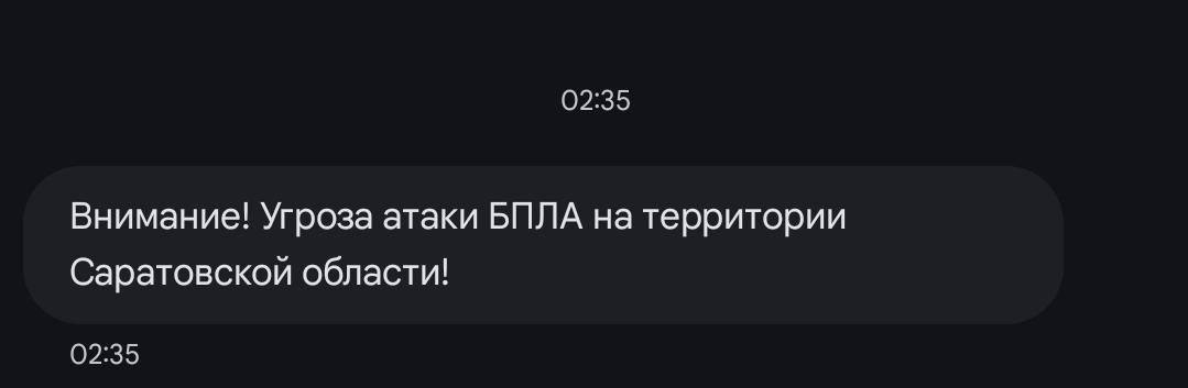Абоненты «Билайна» получили оповещение в 02:35, а другие операторы рассылали его с 2:15 до 2:25 по местному времени. Ранее, около 1:00, из соображений безопасности был закрыт аэропорт «Гагарин» в Саратове.