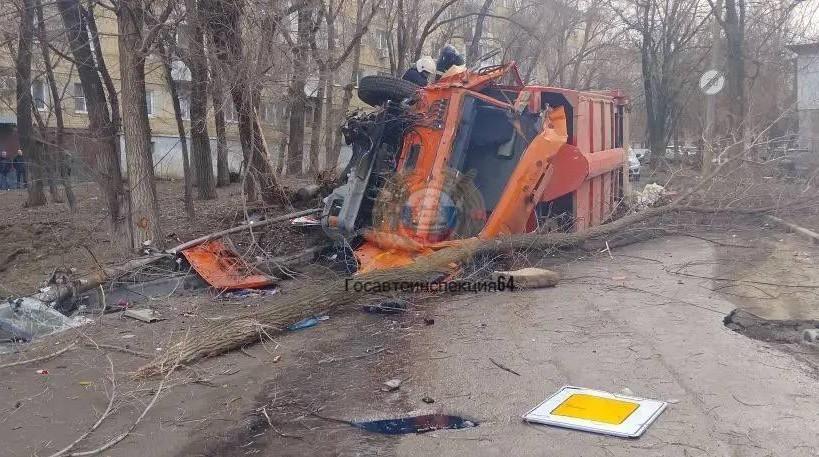 В Саратове мусоровоз врезался в дерево, травмировав пассажира